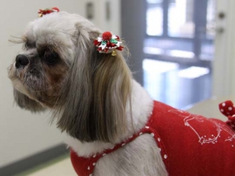 | 11月より、期間中1回のみクリスマスリボンをご用意しております。 是非お早めにご予約ください。 ※写真 モモちゃん クリスマススタイル!! |